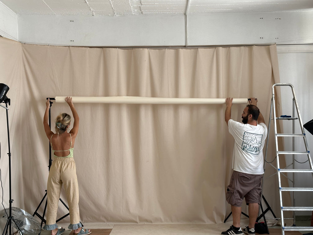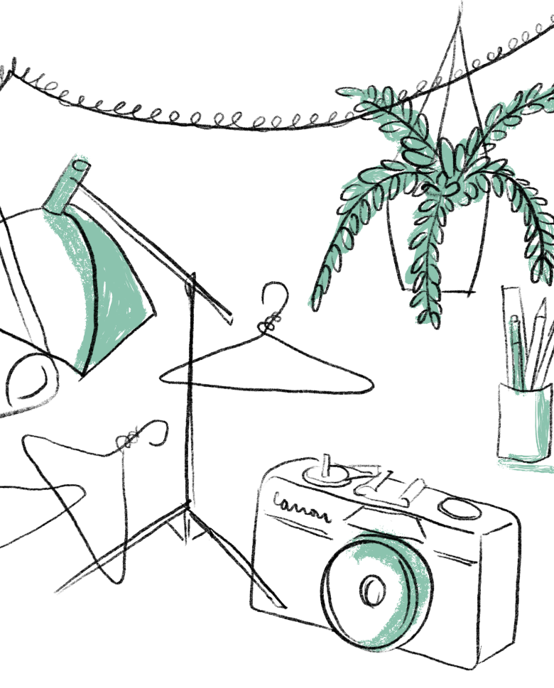 Με μπόλικο φως να μπαίνει από τα μεγάλα του παράθυρα, με κάμερες και αυτοσχέδια εξαρτήματα φωτογραφίσεων, με πολύχρωμα πανιά και ρούχα να κρέμονται σε διάφορα σημεία, το μεγάλο τραπέζι όπου καθόμαστε όλοι μαζί και τη μικροσκοπική κουζίνα που μαγειρεύουμε... το studio μας είναι σαν ένα σπίτι μακριά από το σπίτι μας.